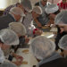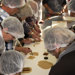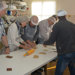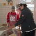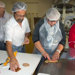 Aus hygienischen Gründen wurden alle aufgefordert eine Haube, eine Schürze und Überziehschuhe zu tragen. Die lustige Verkleidung musste natürlich auf Fotos festgehalten werden!