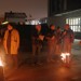 Die Finnenkerzen boten nur wenig Wärme bei den eisigen Temperaturen und dem frostigen Wind. Als dann noch der Regen einsetzte, suchten die Anwesenden Schutz in Innern und führten die heissen Diskussionen weiter.