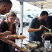 Innerhalb kürzester Zeit wurde die notwendige Infrastruktur (In-/Outdoor) vor der Werkstatt aufgebaut. Bänke und Zelte wurden arrangiert, einen Grill im Trockenen aufgestellt und die Grillzutaten wurden angerichtet.
