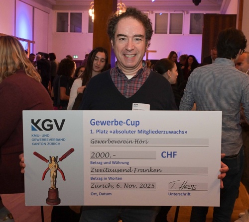 Mit grosser Freude und immensem Stolz dürfen wir verkünden: Der Gewerbeverein Höri hat den Gewerbe-Cup 2025 des KGV (KMU- und Gewerbeverband Kanton Zürich) in der Kategorie «Absoluter Mitgliederzuwachs» gewonnen!