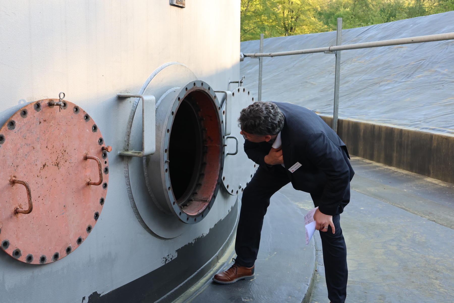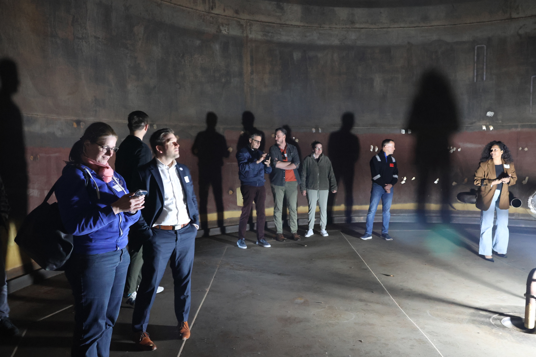Aktuell finden umfangreiche Reinigungsarbeiten statt – ein Prozess, der nur in grossen zeitlichen Abständen durchgeführt wird. Dadurch ergab sich ein aussergewöhnliches Highlight: Die Tanks konnten von innen betreten werden, was normalerweise aus Sicherheits- und Betriebsgründen nicht möglich ist. Dieser seltene Einblick vermittelte eindrucksvoll die gewaltigen Dimensionen und die technische Komplexität der Anlage.